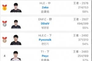 体育资讯4月9日讯 跟韩服排位统计小程序显示,Zeka再次登顶韩服第一。