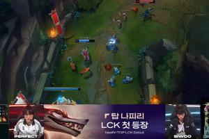 体育资讯04月15日讯 LCK常规赛,KT vs DK决胜局。PerfecT选出纳亚菲利上单对线Siwoo韦鲁斯,导播给出数据,该英雄首次在LCK以上单身份出场。