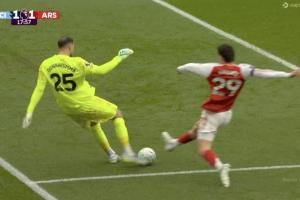 比赛第18分钟,多纳鲁马门前出现超级失误送礼!哈弗茨拦截下皮球顺势破门,阿森纳1-1扳平曼城!