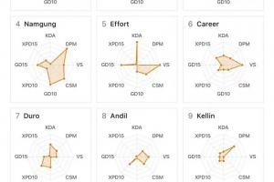 体育资讯4月20日讯 近日外网网友分享了LCK第三周的选手数据图,其中T1仅辅助选手Keria发挥较为出色,此前ShowMakr的数据图略显幽默,而更抽象的为deokdam,其数据图仅一个靶心!