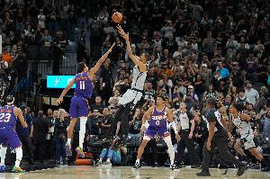 落后1分敢压时间!文班亚马连续晃动后运一步干拔后仰准绝杀太阳