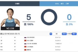 ITF马鞍山W35赛,王曦雨复出第一站即未丢一盘连胜5场,拿下冠军,即时排名升至201。